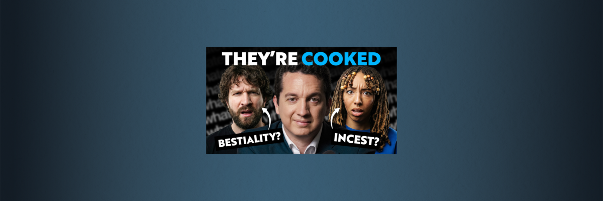 I bet Wilson picked twin brothers because this evades other explanations for why incest is immoral. Many people will say incest is wrong because it harms people specifically, it causes children to exist who are more likely to have genetic deformities, and it often involves family members grooming young members and exploiting them through power imbalances even when they’re no longer children, but the genetic deformity argument doesn’t work because it’s not wrong for women to get pregnant over the age of 35 even though their children are more likely to have birth defects and it doesn’t work. In cases of same sex incest where the duo cannot reproduce and if their adult wins than they warrant a case, a case of grooming each other. You could even bring up real cases of genetic sexual attraction that occur when separated blood relatives meet for the first time as adults, and so there’s no grooming that happened when they were children and become attracted to one another. This isn’t as uncommon as you might think given that men who donate sperm to create hundreds of children often create situations where people fall in love with half siblings that they never knew existed. You can also pick examples of disordered sex acts involving non-humans. This includes consensual necrophilia or people allowing a partner to engage in sex acts with their dead body or consider this clip from the BBC saying that maybe we should help people with rape fantasies. As long as everybody consents